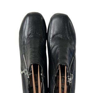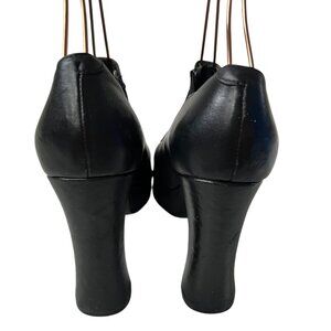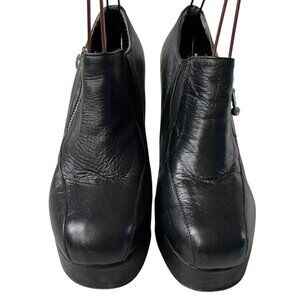 Vintage 90s ankle booties, Capa de ozono brand, black leather, platform, 4" block heel, side zipper, US women's 7, insole length: 9.5", preowned and shows wear on the soles, scuffing, the lining is flaking off - see photos