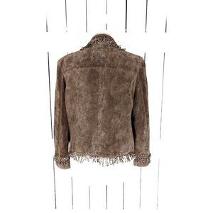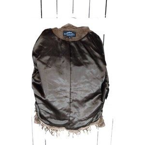 Vintage 90s brown suede leather beaded fringe country western boho jacket