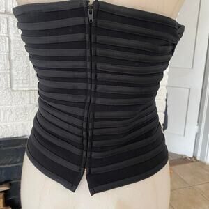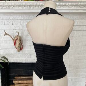 Vintage 90s Cache Black ribbed halter top with rhinestone neck buttons and zipper back has slight stretch. Grunge gothic