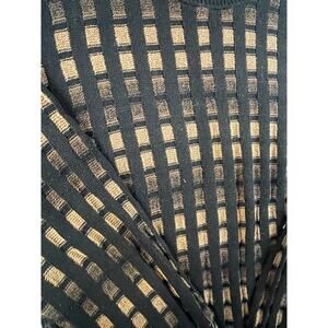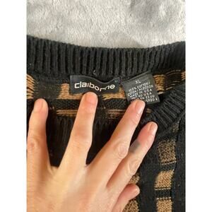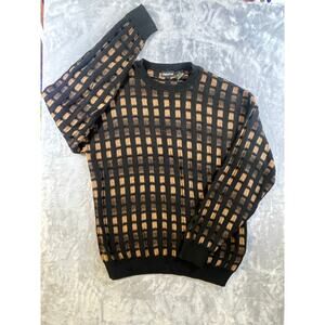 Really cool geometric gradient brown squares on a black background. Classic crewneck pullover fit. Black ribbing on trim. 100% cotton. Made by Clairborne and marked a XL.