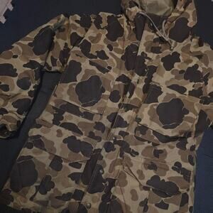 camo pattern, oversized fit, fleece lining, utility style, urban wear, streetwear, military inspired, rugged, soft fabric, outdoorsy