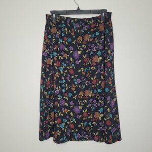 Vintage 90s dark moody floral whimsy witchy a line midi skirt size large