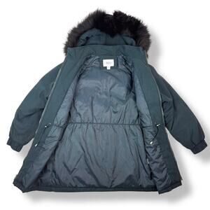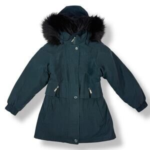 Vintage 90's deep cyan microsuede water repellant coat with fox fur trim hood