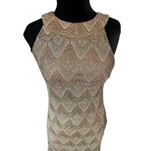 Vintage 90’s does 30’s SL Fashions Gold Fringe Gatsby Halter Dress 10 Medium