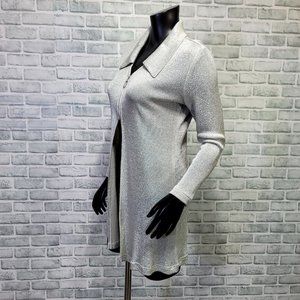 Vintage 90s does 70s New Star USA M Silver Metallic Long Line Top Open Front
