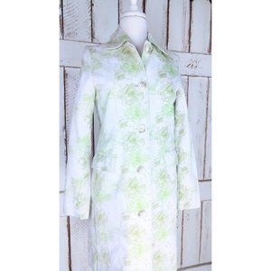 Vintage 90s green floral long cotton fitted jacket long floral cotton trench
