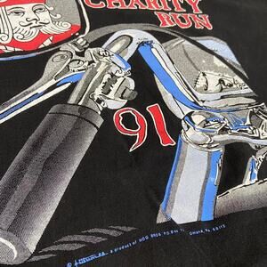 Vintage 90s Hanes motorcycle tour tee shirt. Single stitch. Made in USA 🇺🇸 black. Charity run. Omaha, Nebraska. Spina bifida. Has some holes on the hip