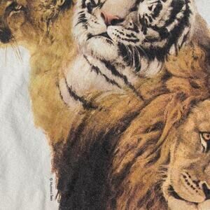 Vintage 90s human-I-tees cat lion tiger shirt. Made in USA 🇺🇸. Anvil red bar tag. Animals.