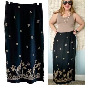 Vintage 90s midi long pencil skirt giraffe safari pattern boho size medium M