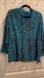 Vintage 90s oriental print button up silver turquoise blouse top size large