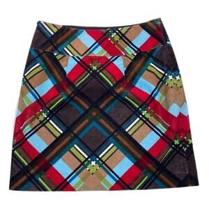 Vintage 90s Rainbow Plaid corduroy midi skirt. Has a zipper on the side. No stretch on waistband , brand is Etcetera