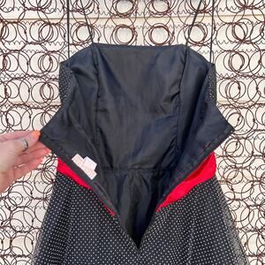 Vintage 90s red black white polkadot strapless punk goth prom dress LARGE