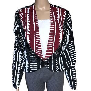 Vintage 90s red black & white crop bead tassel jacket mod size L