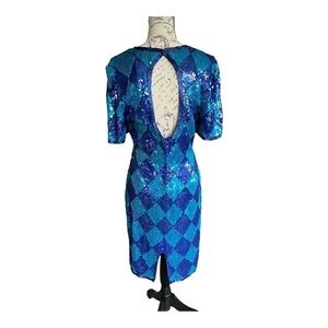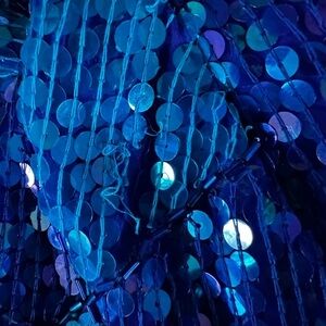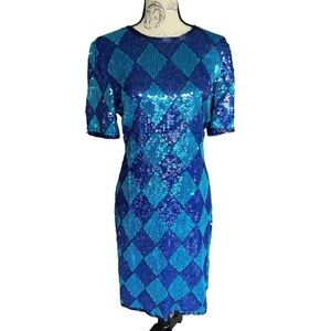 Gorgeous 90s dress in purple/blue sequins. Excellent pre owned condition. One small area with loose/missing sequins. See photos for condition and measurements. Fully lined snd totally spectacular!