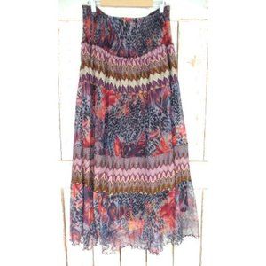 Vintage 90s sheer animal print/floral knit Indian print boho maxi skirt/long gypsy festival skirt/tube top dress/3X