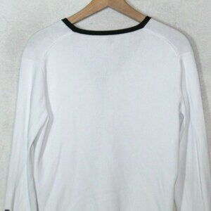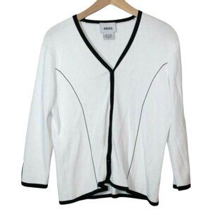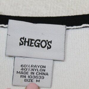 Vintage Shegos womens cardigan shirt size M white black 90s stretch knit casual