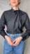 Vintage 90s tie neck bow secretary blouse black striped satin jacquard long sleeve. Shoulder button detail. 100% polyester. Gently used vintage condition. Check out the video of this gem in its current condition!