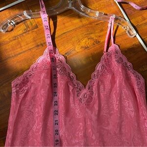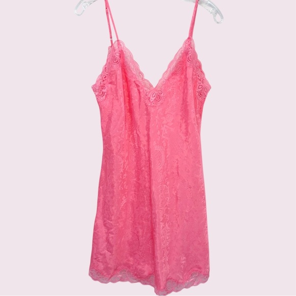 Deadstock 90s vintage (from my moms closet, she got as a gift and never wore it) gorgeous slip dress from gold label Victoria’s Secret. Has a subtle print in the satin, and dainty lace neckline and hems. Lightweight and soft satin. Spaghetti straps. Size M.