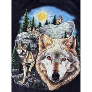 Vintage 90s wolves graphic tee with detailed artwork Tshirt Fits XXL by Murina