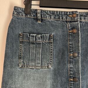 Vintage 90’s women teens Esprit Blue Pencil Skirt Knee-Length button down sz 11