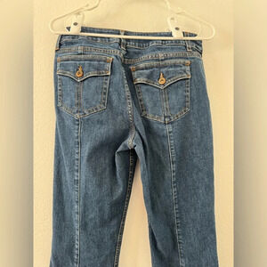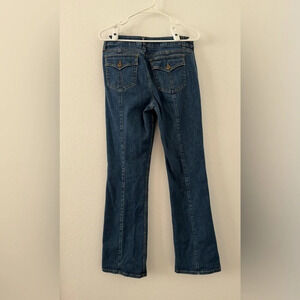 This is a listing for a pair of preowned Vintage 90s y2k Area Jeans Bootcut Back Flap Pockets Slit Front Pocket Size 10. Good condition, light wear, approximate measurements in photos. Light Stretch. Please see all photos for details as they are part of the description.
