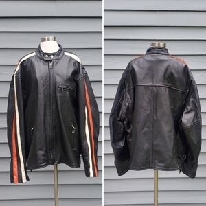 Vintage 90s y2k Black Orange White Arm Stripes Racer Racing Moto Grunge Jacket