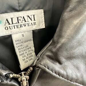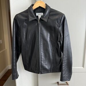 Vintage 90s y2k Black Leather Fitted Jacket. Size small. Hidden side slit waist pockets. Soft buttery leather, jacket is lined. Zipper closure. More of a matte black, not dark black. Fitted style. Measures: 23" length, 19" flat across chest, 24" sleeve and 16" shoulder seam to seam. Good pre owned condition. Light quarter inch rub mark on top left shoulder arm. It is minimal but I want to mention it. Polish will likely resolve. White areas in photos are reflection from the light.