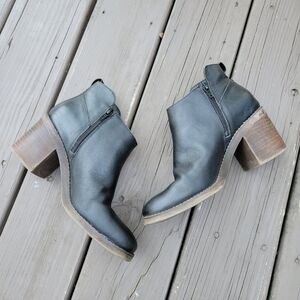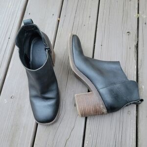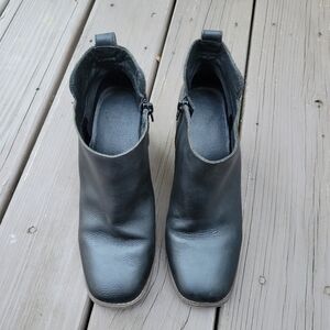 Vintage 90s y2k Bratz Black Leather Chunky Heel Square Toe Ankle Boots Booties 9