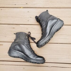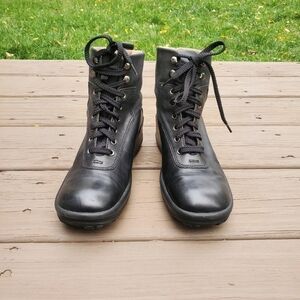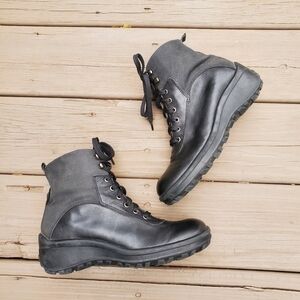 Vintage 90s y2k Bratz Black Leather Chunky Lace-up Lolita Granny Boots Booties