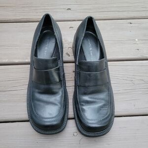 Vintage 90s y2k Bratz Black Leather Oxford Chunky Heel Preppy Academia Loafers