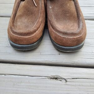Vintage 90s y2k Bratz Brown Suede Leather Chunky Heel Moc Toe Ankle Boots 7.5
