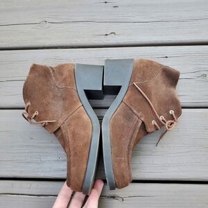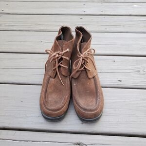 Vintage 90s y2k Bratz Brown Suede Leather Chunky Heel Moc Toe Ankle Boots