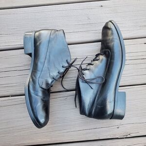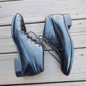 Vintage 90s y2k Bratz Lace Up Square Toe Chunky Heel Black Ankle Boots Booties 9
