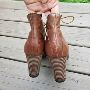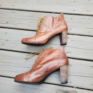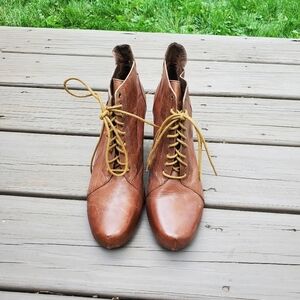 Vintage 90s y2k Brown Leather Lace Up Chunky Heel Victorian Granny Ankle Boot