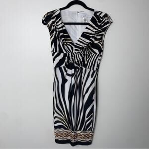 Vintage 90s y2k Cache Animal Zebra Print Sleeveless V-neck Mob Wife Mini Dress 4