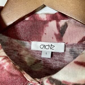 Vintage 90s y2k Cache Size Large Blouse - Red Tie Dye Half Button Luxury. Features all over red tie dye print, collared neckline, long sleeves, half button front, and pullover closure. 95% rayon, 5% spandex. Please see condition notes and photos for condition.