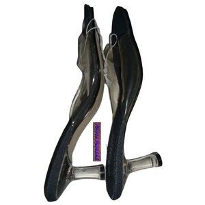 Vintage 90s y2k Deadstock Clear Lucite Plastic Denim Slides Square Toe Heels 7