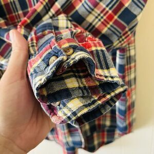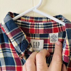 Vintage 90s y2k Gap Button Up Shirt Soft 100% Cotton Plaid Long Sleeve Medium. Soft woven fabric, feels lightly fuzzy almost like a flannel.