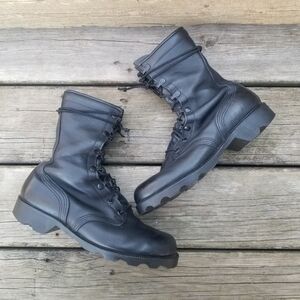 Vintage 90s y2k Grunge Punk Rock Black Leather Military Issue Combat Moto Boots