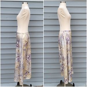 Vintage 90s y2k Kathy Lee Blue Tan Satin Purple Floral Midi Slip Skirt 12