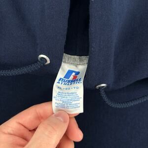 Vintage 90s y2k Men's Navy Blue Russell Athletic Blank Baggy Hoodie Sweatshirt XL