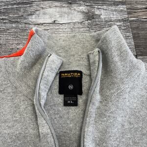 Vintage 90s y2k Nautica Competition Gray Mens L 1/4 Zip Spell Out Mock Sweater