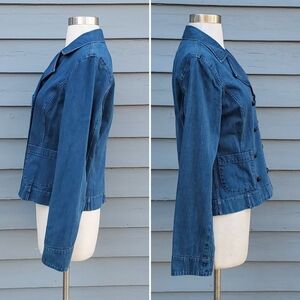 Vintage 90s y2k Ralph Lauren Double Breasted Cropped Trench Denim Peacoat Sm