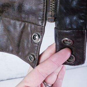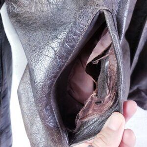 Preowned vintage condition, see pictures for signs of wear and distressing consistent with vintage leather Coats, some Grunge distressing, Hole in right front pocket lining, lining zipper un-sewn in one spot, missing top snap