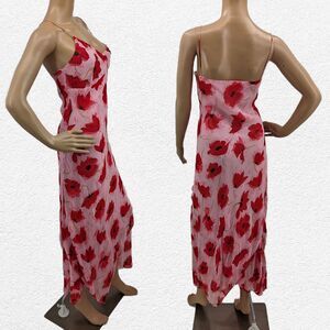 Vintage 90s y2k SND Slip Dress Floral Midi Beaded Fairycore Prom Pink Size 7