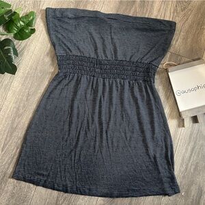 Vintage 90s y2k Striped Strapless Smocked Waist Tube Top w Button Detail. Size L