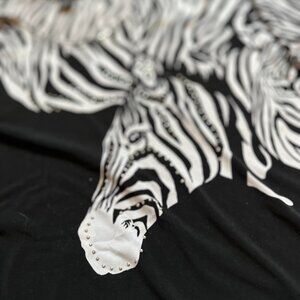 Vintage 90s y2k Valentina graphic Black & white zebra print asymmetrical long sleeve top embellished rhinestone - 1X