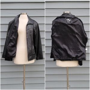Vintage 90s y2k Wilson's Black Leather Designer Luxury Bratz Racing Racer Coat