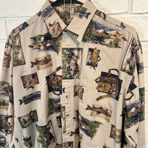 Vintage 90s y2k Woolrich Fisherman Themed Buttondown Shirt Men’s M