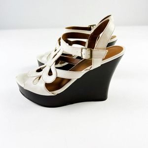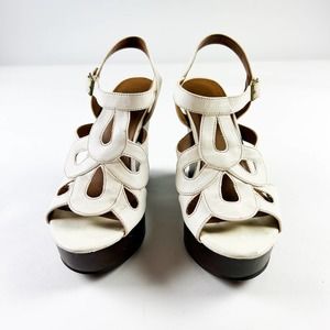 Vintage 90s y2k Zodiac white platform wedge sandal heel boho hippie shoes 8.5 M